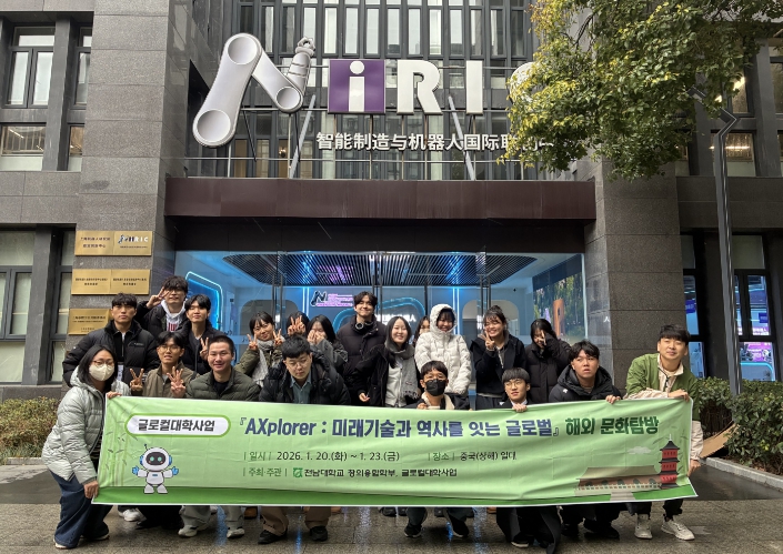 [뉴스앤톡] 전남대학교 창의융합학부(학부장 이인혜)는 ‘글로컬대학사업’의 일환으로 지난 1월 20일부터 23일까지 3박 4일간, 중국 상해와 항주 일대에서 무전공 학생들을 위한 글로벌 진로 탐방 프로그램 'AXplorer: 미래기술과 역사를 잇는 글로벌 탐방'을 성황리에 마쳤다.