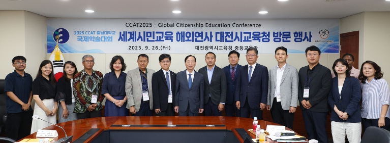 이 자리에는 충남대가 주최한 국제학술대회(CNU Conference of Advanced Technology 2025)에 참석차 방한한 해외 대학 연사들과 충남대 BK21 세계시민교육 미래인재 양성사업단 관계자들이 함께했다.