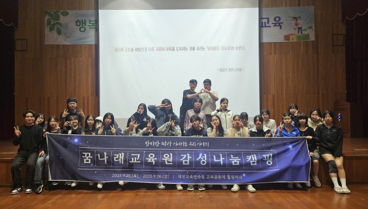 [뉴스앤톡] 대전교육연수원 부설 꿈나래교육원은 9월 25일부터 26일까지 충청남도 공주시 반포면 대전교육연수원 교육공동체 힐링파크에서 1박 2일 감성캠핑을 운영했다.