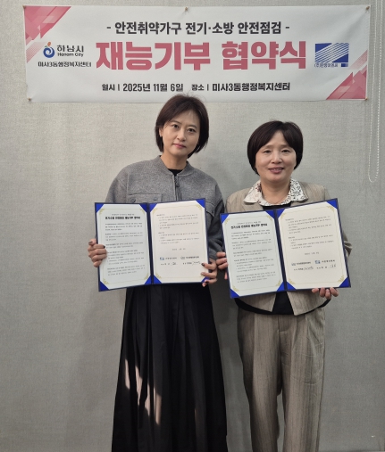 [뉴스앤톡] 하남시 미사3동행정복지센터와 ㈜한영이엔씨는 지난 11월 6일,‘안전취약가구 전기안전 사고예방을 위한 전기·소방 안전점검 재능기부 협약식’을 체결했다.