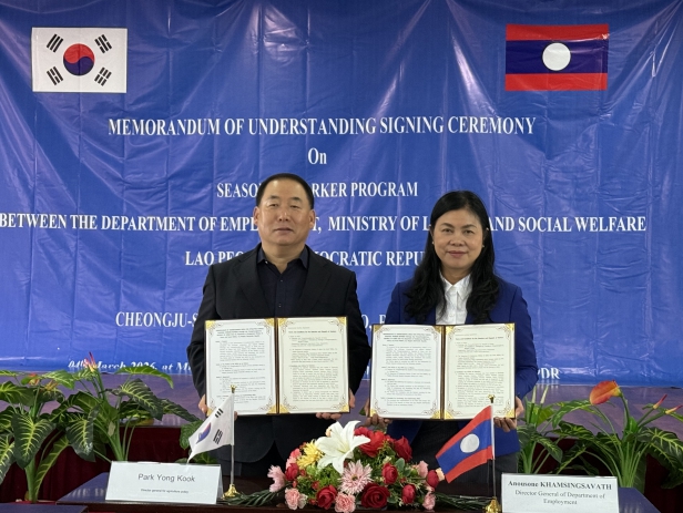 [뉴스앤톡] 청주시는 4일(현지시간) 라오스 노동사회복지부와 외국인 계절근로자 도입을 위한 업무협약(MOU)을 체결했다.