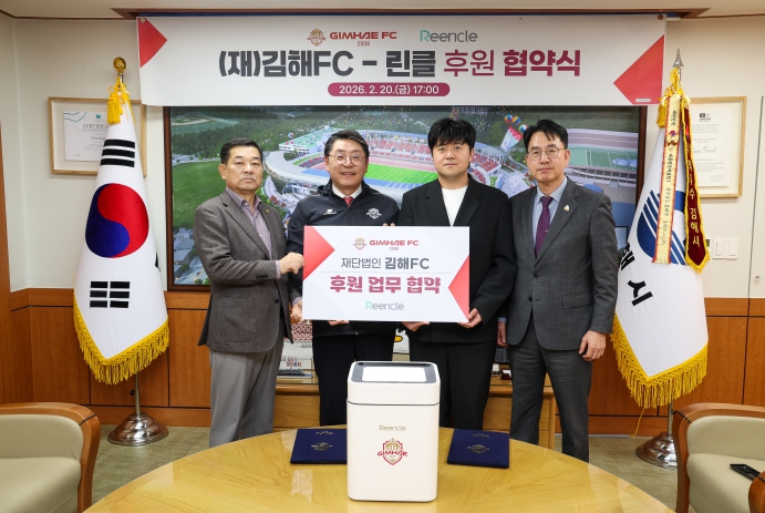[뉴스앤톡] 재단법인 김해FC가 지역 내 혁신 기업과의 파트너십을 통해 구단 경쟁력 강화와 지역 상생이라는 두 마리 토끼 잡기에 나섰다. 김해FC는 20일, 가정용 음식물처리기 전문 브랜드인 ‘린클(Reencle)’과 공식 후원 협약을 체결했다고 밝혔다. 이번 협약은 김해FC의 중장기 발전 5대 전략 중 하나인 브랜드 협력 프로젝트의 핵심 사업, ‘아이언 유니티 네트워크(Iron Unity Network)’ 구축의 일환으로 성사됐다.