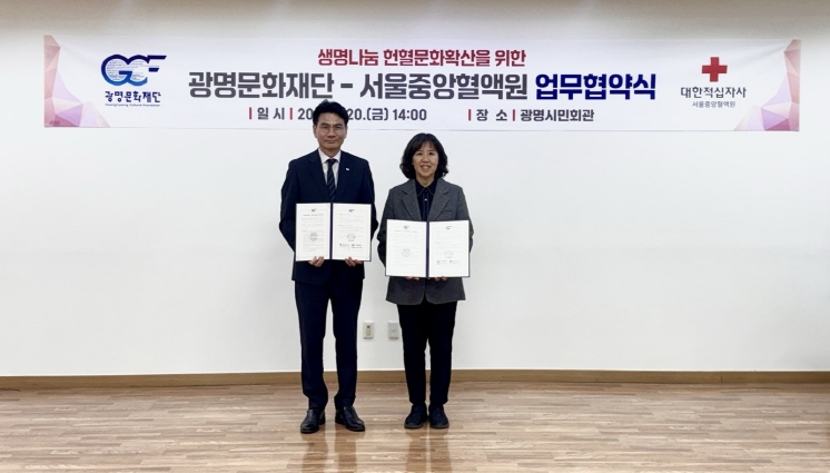 [뉴스앤톡] (재)광명문화재단(대표이사 송은영)은 서울중앙혈액원(원장 이재용)과 함께 2월 20일 오후 2시에 광명시민회관에서 '헌혈자 대상 문화예술 프로그램 제공 및 헌혈 문화 정착을 위한 업무협약'을 체결했다고 밝혔다.