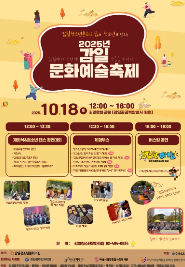 [뉴스앤톡] 하남시 감일청소년문화의집은 오는 10월 18일 오후 12시부터 18시까지 감일문화공원(감일공공복합청사 뒷편)에서 '제2회 감일문화예술축제'를 개최한다.