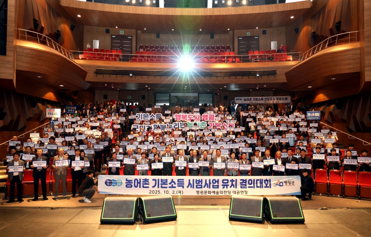 [뉴스앤톡] 영광군은 지난 10월 2일 오후 2시, 영광문화예술의전당 대공연장에서 '농어촌기본소득 시범사업 유치 결의대회'를 성황리에 개최했다.
