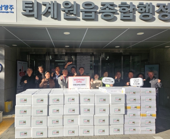 [뉴스앤톡] 남양주시는 10일 퇴계원읍사무소에서 퇴계원고등학교 총동문회가 지역 취약계층을 위해 김장김치와 누룽지를 전달하는 나눔 행사를 진행했다고 밝혔다.