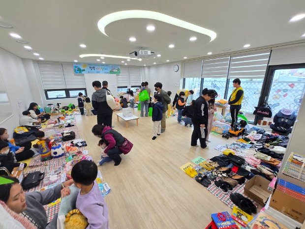 [뉴스앤톡] 경산시가족센터는 8일 옥산공동육아나눔터에서 돌봄품앗이 가족과 지역 주민이 함께하는 ‘행복 나눔 장터’ 바자회를 운영했다.