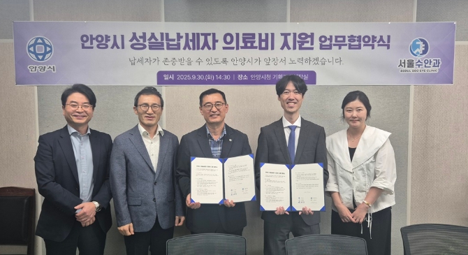 [뉴스앤톡] 안양시는 지난달 30일 오후 2시30분 3층 기획경제실장실에서 관내 의원인 서울수안과와 ‘성실납세자 의료비 지원’ 업무협약을 체결했다고 1일 밝혔다.