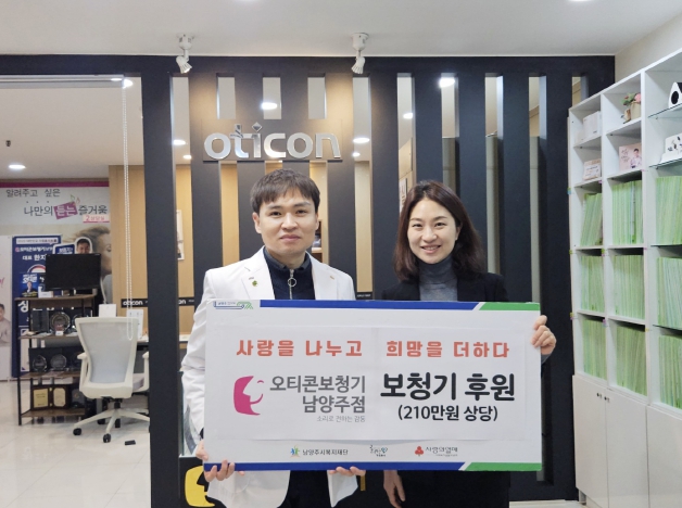 [뉴스앤톡] 남양주시는 12일 오티콘보청기 남양주점(대표 한지석)에서 청력 저하로 불편을 겪고 있는 저소득층 어르신 1명에게 보청기 1대(약 210만 원 상당)를 동부희망케어센터에 기탁했다고 밝혔다.