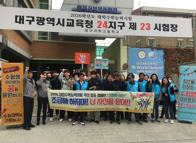 [뉴스앤톡] 대구 서구 청소년지도협의회(회장 황만태)는 지난 12일, 서부고등학교 정문에서 학생들의 수능 예비 소집일 시간에 맞춰 수험생 응원 및 선도·보호 합동 캠페인을 실시했다.
