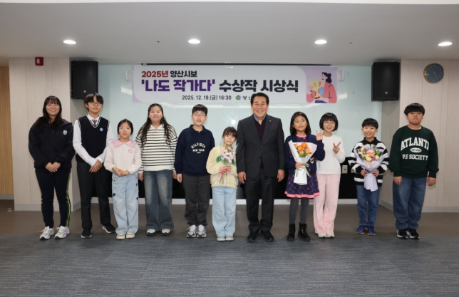양산시는 19일 오후 양산비즈니스센터 세미나1실에서 2025년 ‘나도 작가다’ 우수작 시상식을 개최했다. ‘나도 작가다’는 시가 지역 학생들의 문예 창작활동을 장려하고, 다양한 계층의 시민 참여를 확대하기 위해 2023년부터 운영하고 있는 양산시보의 학생 참여 지면이다.
