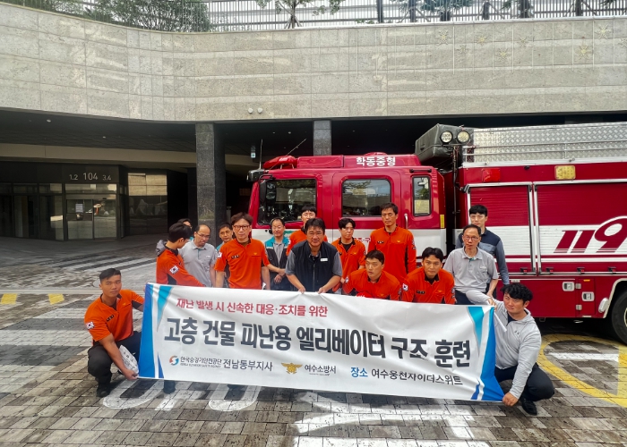 [뉴스앤톡] 여수소방서는 9월 26일 여수시 소재 아파트에서 고층 건물 승강기 사고 발생에 대비한 유관기관 합동 대응역량 강화 훈련을 실시했다고 밝혔다.