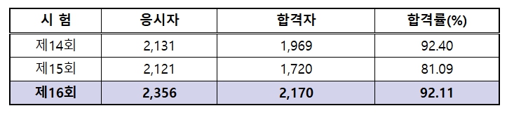[뉴스앤톡] 법무부는 지난 8월 2일 제16회 법조윤리시험을 실시한 결과, 응시자 2,356명 중 2,170명이 합격했고, 합격률은 92.11%로 작년 합격률(81.09%) 보다 11.02%p 상승했고 재작년 합격률(92.40%)과는 비슷했다.