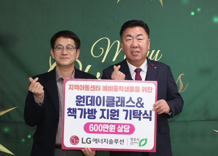 [뉴스앤톡] 청주시와 LG에너지솔루션은 16일 지역아동센터를 이용하는 아동 중 예비 중학생과 함께하는 원데이 클래스를 열고 책가방을 후원하는 등 따뜻한 나눔 행사를 개최했다.
