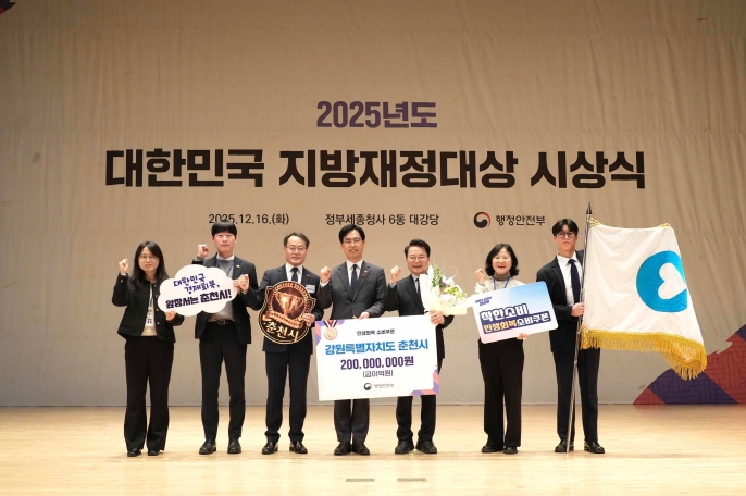 [뉴스앤톡] 춘천시가 16일 행정안전부 주관 2025 대한민국 지방재정대상에서 민생회복소비쿠폰 집행 분야 전국 최상위 성과를 인정받아 ‘가’등급에 이름을 올렸다.
