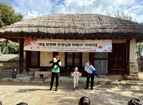 [뉴스앤톡] 울산광역시교육청은 25~26일 오전 11시 30분부터 12시까지 외솔 최현배 선생 생가터에서 어린이와 가족을 대상으로 이야기 극 ‘외솔 최현배 선생님과 까막이’ 공연을 열었다.