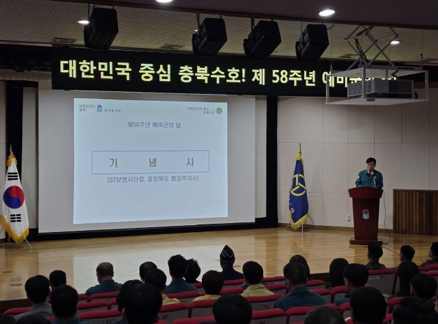 [뉴스앤톡] 충북도는 4월 3일 충북미래여성플라자 대강당에서 창설 제58주년 예비군의 날을 기념하여 김영환 충북도지사, 김경수 제37보병사단장, 도내 예비군 지휘관 등 200여 명이 참석한 가운데 예비군 창설의 의의를 선양하고 사명감과 자긍심을 고취시킴으로써 자주국방과 완벽한 지역 향토방위 결의를 다지는 기념식을 개최했다고 밝혔다.