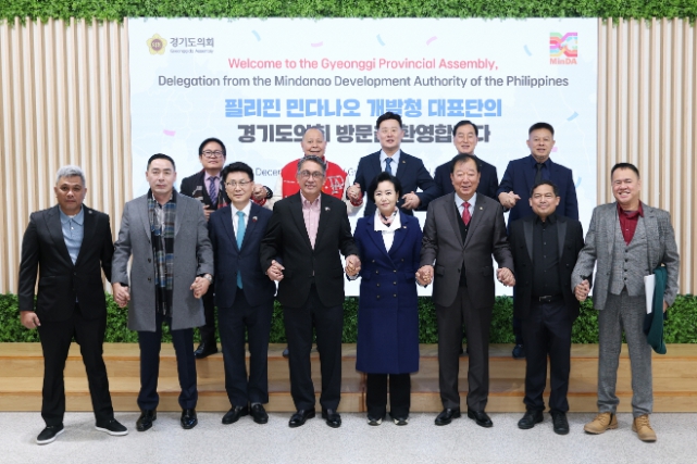 이날 경기도의회에서는 정윤경 부의장을 비롯해 최종현 더불어민주당 대표의원(수원7), 임상오 안전행정위원장(국민의힘·동두천2), 이제영 미래과학협력위원장(국민의힘·성남8)이 대표단을 영접했다. 민다나오 측에서는 레오 마그노 개발청 장관을 포함해 4개 주 주지사, 국회의원 및 등 총 11명이 참석했다.