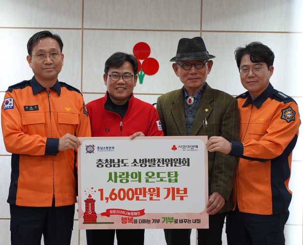 [뉴스앤톡] 충청남도 소방발전위원회(소방정책 자문·협의기구)는 지난 30일 연말연시 이웃돕기 성금 모금인 ‘사랑의 온도탑’에 성금 1600만 원을 기탁했다고 1일 밝혔다.