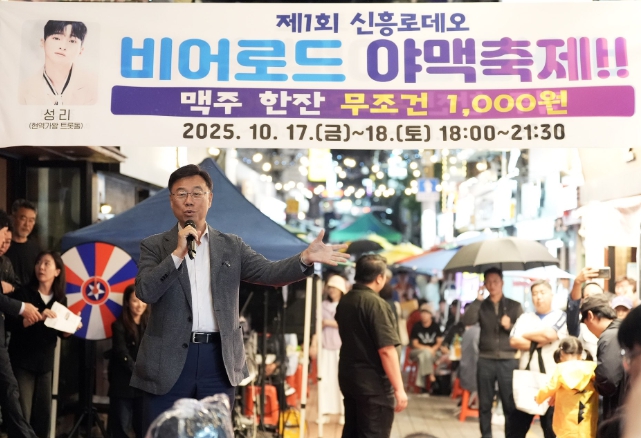 [뉴스앤톡] 신상진 성남시장은 17일 저녁 신흥로데오거리 종합시장 먹자골목에서 열린 ‘제1회 신흥로데오 비어로드 야맥축제’ 개막식에 참석해 관계자들을 격려하고 시민들과 소통했다.