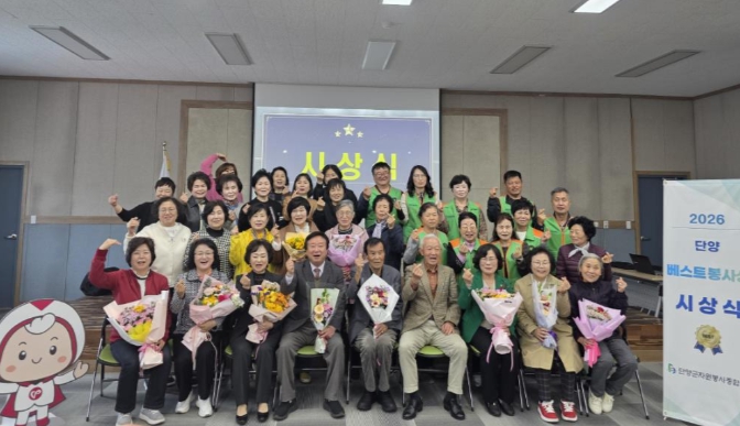[뉴스앤톡] 단양군자원봉사종합센터는 지난 26일 ‘2026년 1분기 베스트 봉사상’ 시상식을 개최하고 지역사회 곳곳에서 헌신적인 나눔을 실천한 개인과 단체를 선정·시상했다.