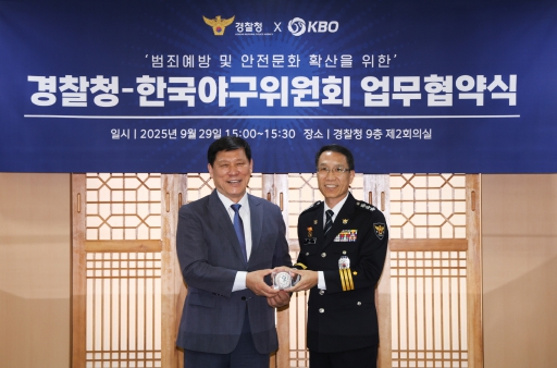 [뉴스앤톡] KBO와 경찰청(청장 직무대행 유재성)은 9월 29일(월) 경찰청에서 업무 협약을 체결했다.