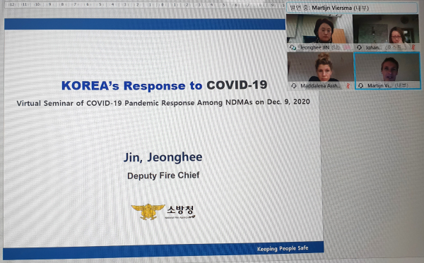 12월 9일 저녁 8시에 시작해 한 시간 동안 화상으로 진행된 이번 행사에는 UN을 비롯해 이탈리아, 중국 등 10개국 재난관리 고위직 42명이 참석한 가운데 한국소방의 코로나19 대응체계에 대해 많은 관심을 보였다.