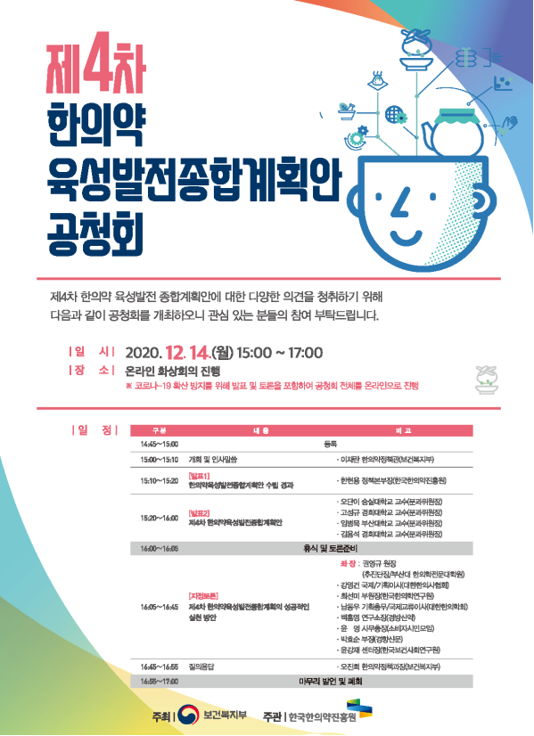 보건복지부 한의약정책과 오진희 과장은 “이번 공청회를 통해 전문가와 현장의 다양한 의견을 수렴해, 한의약이 국민건강증진과 산업육성에 실질적으로 기여할 수 있는 종합계획을 수립하도록 노력하겠다”고 밝혔다.