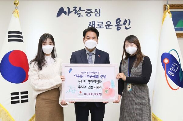 포상금은 지난해 7월부터 11월까지 수지구 고기동에 위치한 고기리계곡의 불법 시설물을 정비한 공로로 경기도에서 받은 것이다.