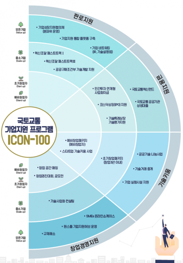 우선, 국토부는 국토교통 분야의 혁신기업을 지원·육성하기 위해 직접 정책수단을 확충하고 10대 중점 육성분야에 대한 맞춤형 지원도 병행할 계획이라고 밝혔다.