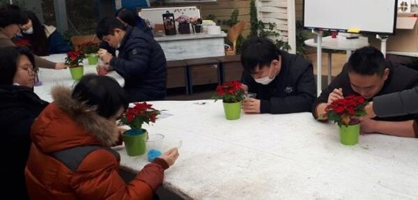 율동 황금마차는 분당구 소재 율동생태학습원의 원예치료 프로그램에 참여 중인 발달장애인 42명이 제품화한 관상용 식물 화분 50점을 선보이는 행사다.