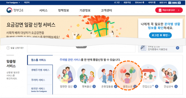 이러한 불편함을 해소하기 위해 행정안전부는 여성가족부, 문화체육관광부 등 관련 기관과 협력해 청소년, 학부모, 청소년 지원 업무 종사자들이 정부24에서 필요한 서비스를 찾아 쉽게 이용할 수 있도록 ‘꿈청소년 원스톱 서비스’를 개발했다.