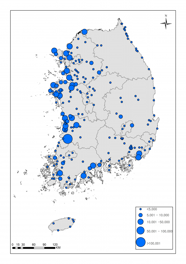 환경부는 전국적인 철새 도래 경향을 보다 상세하게 파악하기 위해 이번 12월 조사대상 지역을 206곳으로 94곳을 늘렸다.