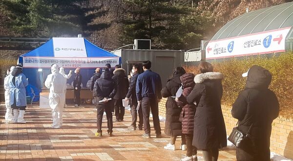 연일 증가하는 검사자들로 검사 대기 시간이 길어짐에 따라 처인구보건소는 대기자들에게 손난로를 제공했다.