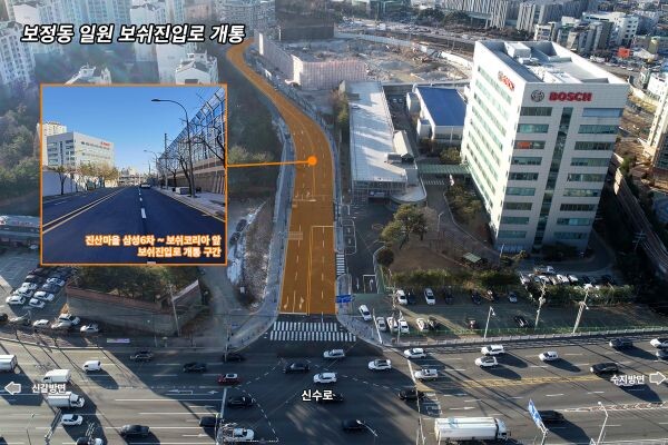이날 오후 5시에 개통하는 이 도로는 구 롯데마트사거리~보쉬진입로 구간으로 수지구 풍덕천1·2동, 상현1·2동, 신봉동과 성봉동 일대에서 죽전·기흥으로 가는 만성적인 교통난을 해소하고 지역 간 접근성을 높이기 위해 개설됐다.