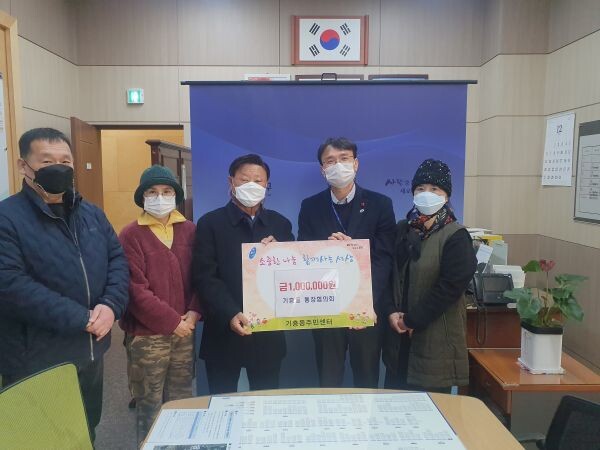 ㈜행복한사과에서 사과즙 100박스를, 주민자치위원회는 성금 100만원을 전달했다.