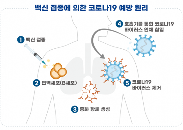예방원리는 백신의 표면항원 단백질이 면역세포를 자극해 중화항체를 형성해 면역반응을 유도하며 코로나19 바이러스가 침입하는 경우 항체가 코로나19 바이러스를 제거하게 된다.