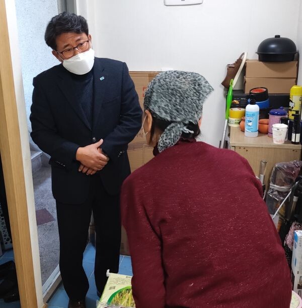 김 구청장은 애로사항을 청취하고 쌀·생필품 등을 전달하며 난방 등 생활 환경을 확인했다.