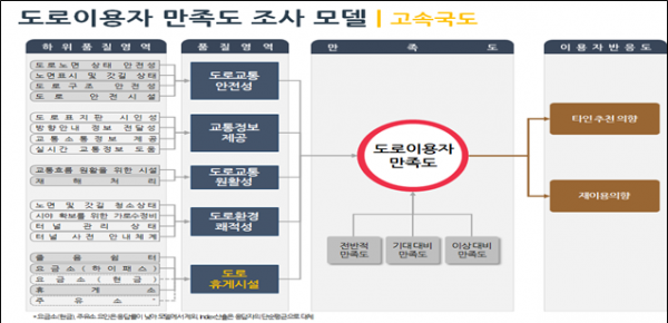 ‘도로이용자 만족도 조사’는 고속/일반국도의 이용자들을 무작위 대상으로 공인기관에서 국가고객만족도지표를 적용해 조사를 진행했다.