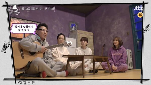 티저 영상을 위한 기타 연주에서 윤종신은 “줄이나 맞춰놓지”, “나 기타 잘 못 치는데”며 연신 투덜거렸고 결국에는 자신의 히트곡 ‘본능적으로’를 자동 반사처럼 연주해 장윤정으로부터 “이거 봐. 또 자기 노래하는 거 봐”라는 질색 반응과 함께 “어떻게 알았어?”라는 모르쇠 반응으로 현장을 웃음바다로 만들었다.
