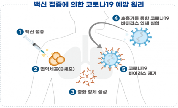 예방원리는 백신의 표면항원 단백질이 면역세포를 자극해 중화항체를 형성함으로써 면역반응을 유도해 코로나19 바이러스가 침입하면 항체가 코로나19 바이러스를 제거하는 것이다.