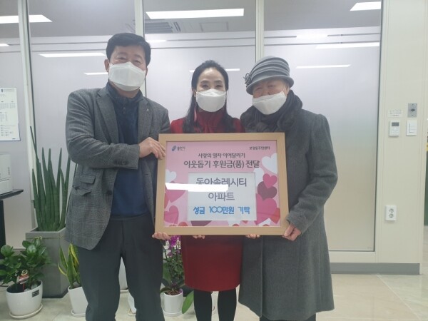 기흥구 보정동에선 동아솔레시티아파트 백정환 입주자대표가 동 행정복지센터를 찾아 입주자들이 십시일반으로 모아 마련한 성금 100만원을 기탁했다.