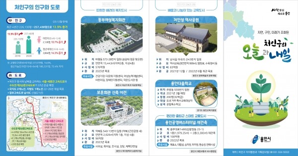 이에 구는 반도체 클러스터 일반산업단지, 용인 센트럴파크 조성, 이동저수지 환경생태공원, 용인에코타운, Farm & Forest 타운, 청년 김대건길, 동부여성복지회관 ,보훈회관 신축 이전, 처인성 역사공원,용인다움학교, 용인공영버스터미널 재건축 등 11개 시책사업이 일목요연하게 정리된 홍보물 1만부를 만들어 각 읍·면·동에 배포키로 했다.