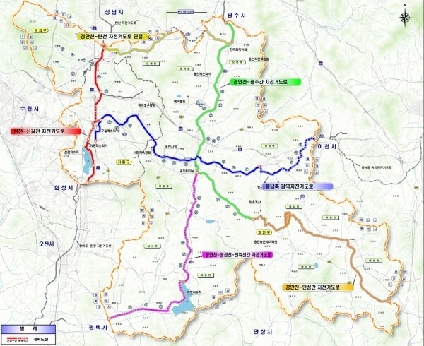 올해 수지구 죽전동에서 처인구 모현읍을 잇는 경안천~탄천 구간을 시작으로 동남축 자전거도로를 순차적으로 조성한다는 계획이라고 전했다공공시설 자전거보관소 9곳, 자전거횡단도 737곳 등 시설물 확충과 함께 이동 수리 센터·자전거 보험 등을 제공해 시민들이 안심하고 탈 수 있는 환경을 제공할 방침이다.