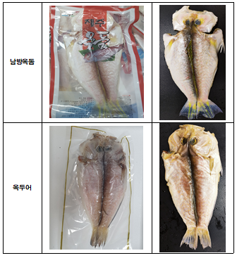 이번 검사는 옥돔을 굽거나 국거리 재료로 사용하면 옥돔의 주요 특징이 사라진다는 점을 노려, 저가의 옥두어를 고가의 옥돔으로 속여서 판매한다는 소비자 정보에 따라 설 명절을 앞두고 안전관리 차원에서 선제적으로 실시했으며 가짜 옥돔을 판매한 업체에 대해서는 ‘식품 등의 표시·광고에 관한 법률’위반으로 고발 등의 조치를 할 계획이라고 전했다.