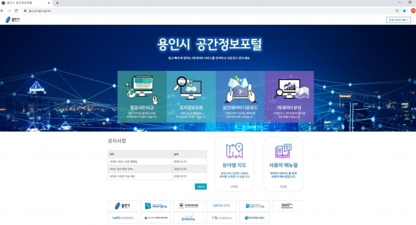 공간정보포털 사이트는 시 홈페이지나 모바일에서 접속할 수 있으며 시의 항공사진을 비롯해 토지 및 건물정보 조회, 공간 데이터 다운로드, 주제별 지도 기반 빅데이터 분석 서비스 등을 제공한다.