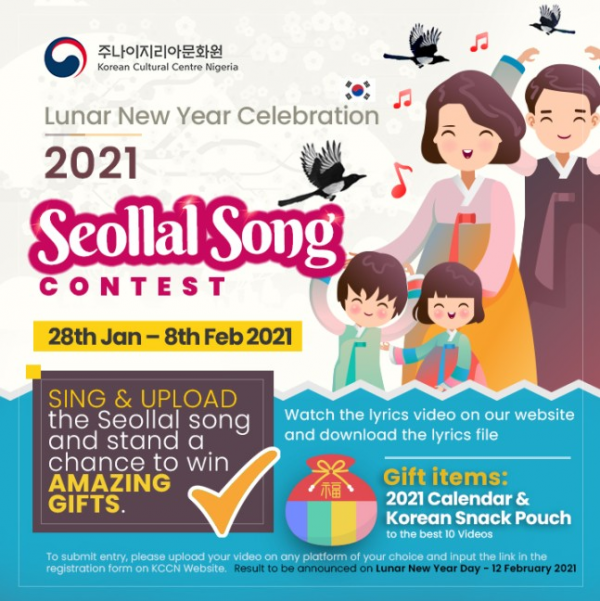 이외에도 설날 노래 부르기 영상공모전, 설날 카드뉴스, 퀴즈대회, 윷놀이 등 전통놀이, 복조리 등 전통공예품 만들기, 떡국 만들기 강좌 등 한국의 다양한 설날 풍습을 만나볼 수 있는 행사들이 이어진다.