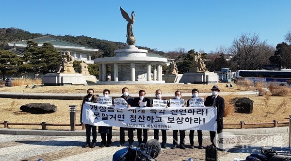 이어 비대위는 기자회견을 마친 뒤 청와대 인근에서 통일대교 남단까지 개성공단 재개 선언을 촉구하는 차량 시위를 진행했다.