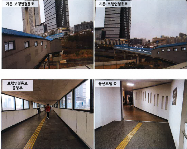 용산역에 있는 기존 공중보행교는 1993년에 설치됐으며 그동안 시민들이 용산역과 용산전자상가 사이를 도보로 이동할 수 있는 역할을 해왔다.