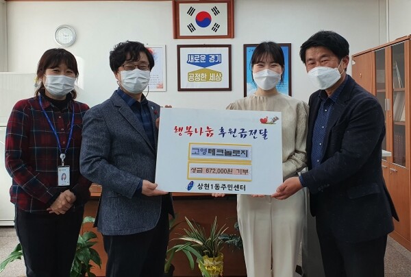 동 관계자는 “따뜻한 마음을 모아 성금을 기탁해 준 고영테크놀로지 임직원들께 감사한다”며 “기탁받은 성금은 관내 어려운 이웃을 지원하는 데 소중히 쓰겠다”고 말했다.